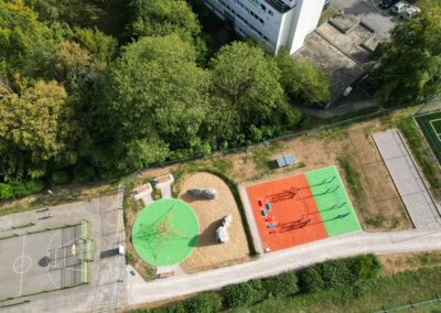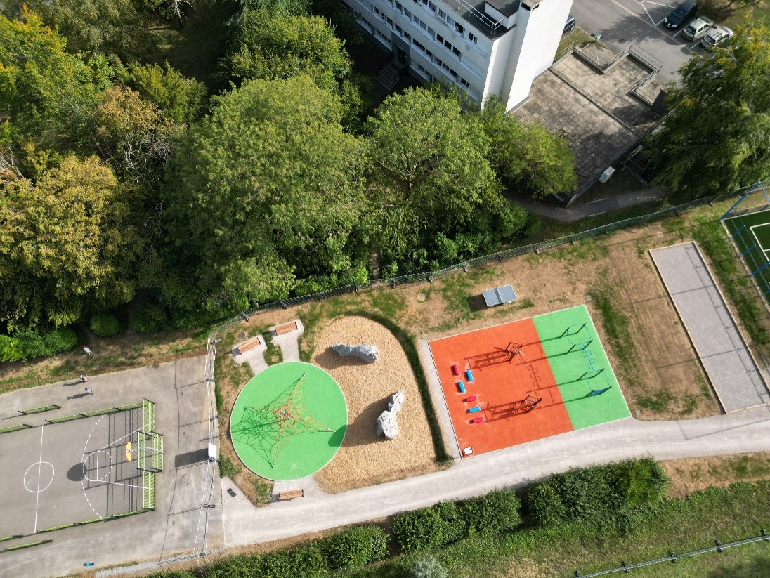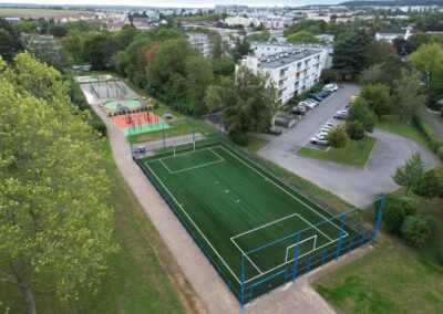 Le projet se compose de plusieurs ouvrages sportifs de proximité, avec la création d’un terrain de foot A5 en gazon synthétique, d’un terrain de pétanque, d’un plateau sportif (cross training, fitness, renforcement musculaire), de deux terrains de basket 3×3 et d’un mur d’escalade.