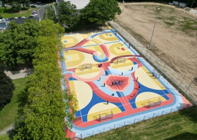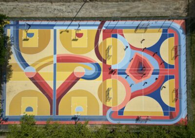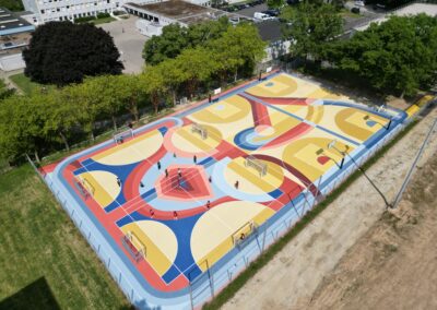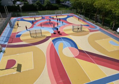Dans cette première phase, un plateau sportif, en libre accès, a été aménagé pour permettre la pratique du basket, handball et football…⚽🏀