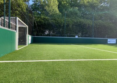 La collectivité a retenu pour ce projet un gazon synthétique avec un remplissage organique en rafle de maïs.